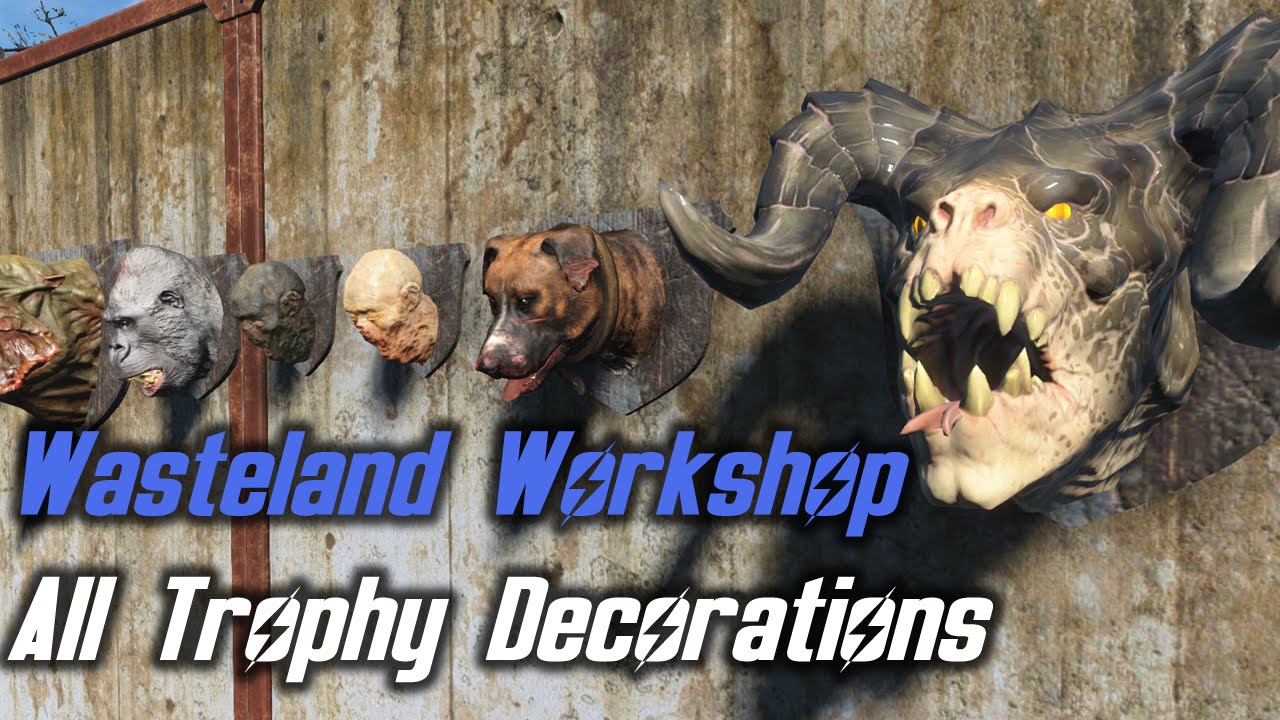 In fallout 4's second dlc, lots of new settlement construction items have been added. Well, my first time went holy shit, there's so many wall head mounts, i'm gonna make the sickest trophy room. The wasteland is a big and dangerous place, luckily for you, playstation lifestyle is here to help you earn the platinum welcome to playstation lifestyle's trophy guide for fallout 4! Thankfully, there's no karma system this time round if you decide to force people into the arena. Here's our fallout 4 wasteland workshop guide covering where too find yao guai meat so that you can attract and catch a deathclaw. The pack has 3 trophies. Fallout 4's second dlc, wasteland workshop, launches next week and will come with just three bronze trophies. Wasteland workshop is not your typical expansion. Wasteland workshop brings a ton of extra items to spruce up your settlements, including cages to capture wild animals and pit them against one another. Bobblehead locations, collectibles and full trophy/achievement guide. This week saw fallout 4's second dlc drop, wasteland workshop, come to ps4, xbox one, and pc. This thread is dedicated to discussing the wasteland workshop dlc. Please give credit for use.